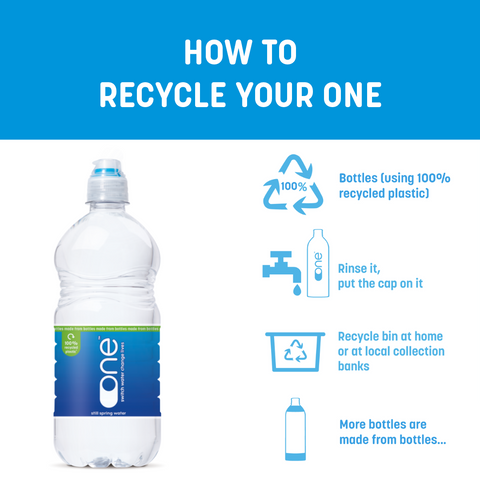 Bottled in the UK, our plastic bottles are made with 100% recycled plastic and are 100% recyclable, making them our lowest carbon product and also entirely carbon neutral!